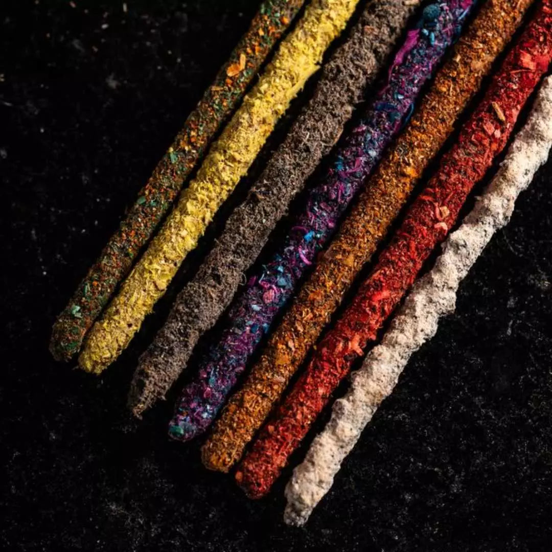 ☀️ Incenso do Sol: Reconecta você com sua identidade, criatividade e fogo interior. Traz vitalidade, liderança e poder pessoal, representando a fonte da vida. Aroma: Cítrico